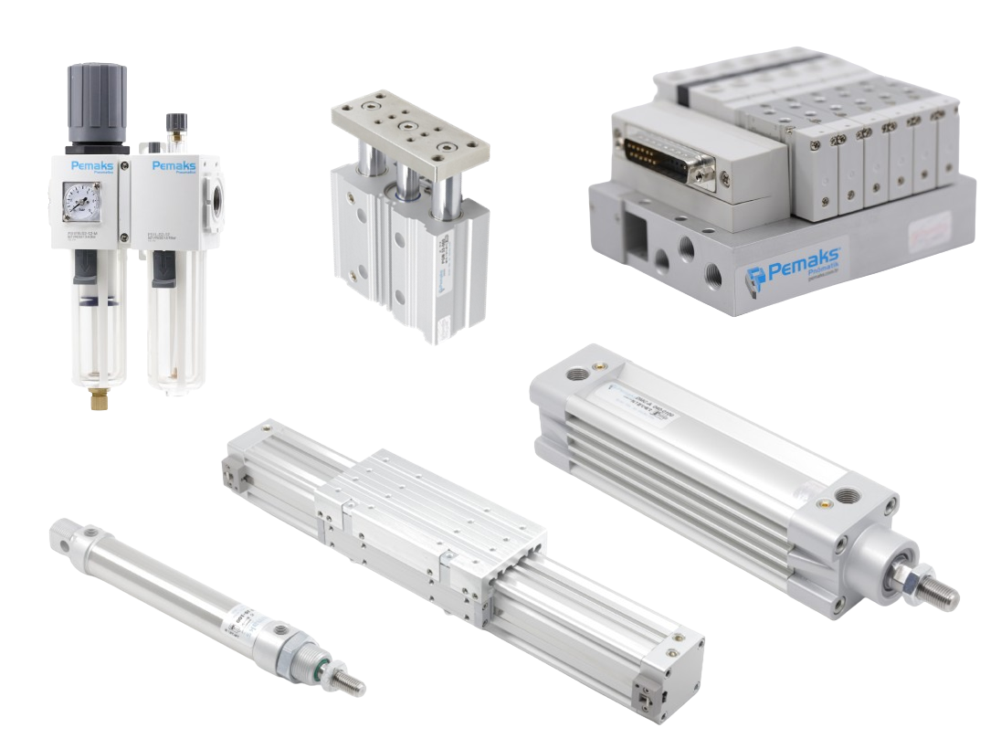Pemaks, Türkiye'nin köklü pnömatik bileşen üreticilerinden biridir. ISO 6431, ISO 15552 ve ISO 21287 standartlarına uygun silindirler, ISO 5599 valf adaları, hava hazırlama üniteleri ve bağlantı elemanlarıyla seri üretim hatlarında milyonlarca çevrim güvenle tamamlanır. AHZ Endüstriyel olarak Kütahya, Afyon ve Bilecik yetkili satış bayisiyiz; ürün seçiminden devre tasarımına ve panolu çözümlere kadar mühendislik desteği sağlıyoruz.